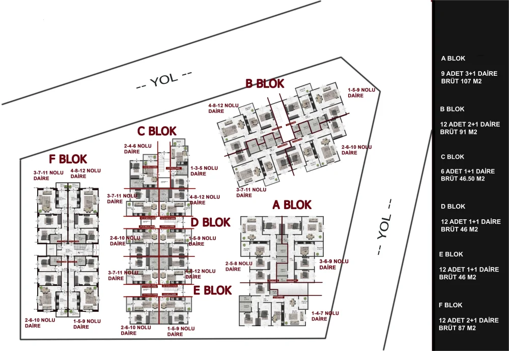 | ADA/PARSEL | BLOK | PARSEL ALANI M2 | İNŞAAT ALANI M2 |